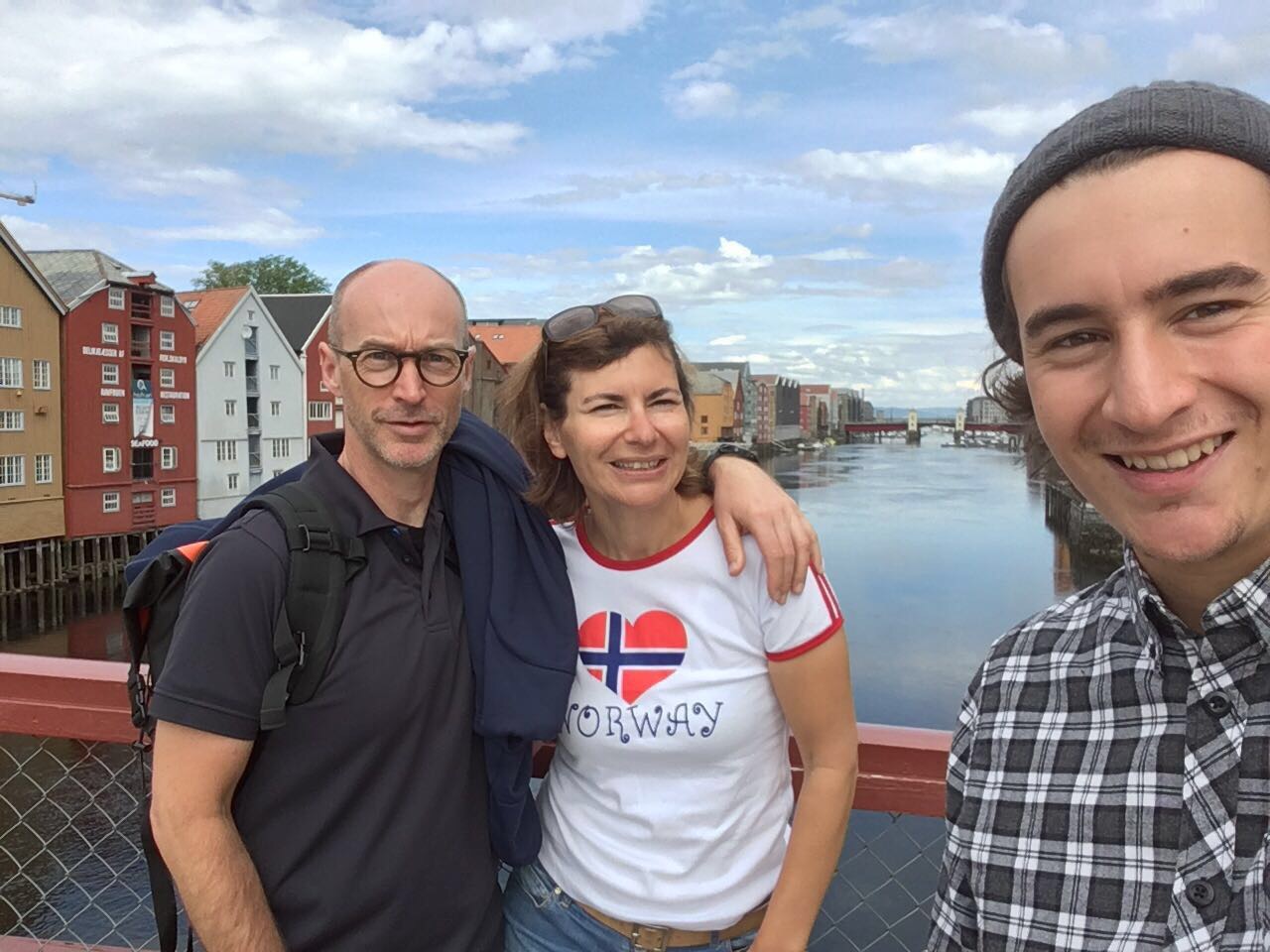 Nach dieser kurzzeitigen Bluthochdruck Phase, verlief der Rest der Anreise bis Oslo - einschließlich der Überfahrt auf dem Ü-60 Fährschiff „Color Fantasy“ - sehr ruhig. Dass auf der Zugfahrt nach Trondheim wieder ein technisches Problem aufgetreten ist, so dass wir unseren Waggon räumen mussten, ist kaum der Rede wert. Allerdings keimt in mir langsam der Verdacht auf, dass sich etwas gegen meine Mission verschworen hat. Erst schlitze ich mir die Hand auf, dann fällt ein Zug aus und der nächste Zug hat auch ein technisches Problem. Ich denke kurzzeitig darüber nach, ob meine abfälligen Twitter Postings über Donald Trump vielleicht das Problem waren? Ich war jedenfalls auf weitere Überraschungen gefasst und legte mir bereits eine Verteidigungsstrategie zurecht. So leicht werde ich mich auch der NSA nicht ergeben. Wir checken so gegen 22:00 Uhr im Hotel ein und vergnügen uns anschließend noch bei bestem Wetter und Sonnenschein bis Mitternacht in Trondheim City. Dieser Mittsommer ist wirklich unglaublich!